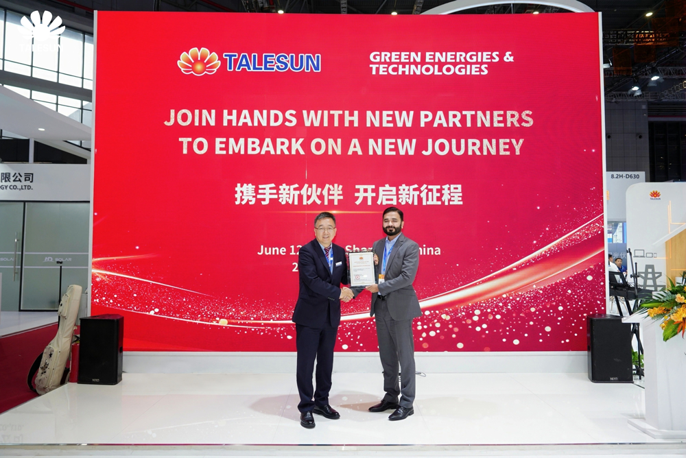 授獎儀式結(jié)束后,騰暉光伏舉行了對巴基斯坦GREEN ENERGIES & TECHNOLOGIES的代理授權(quán)儀式。該公司在當?shù)啬茉搭I(lǐng)域擁有豐富的資源和廣泛的市場渠道,雙方將攜手共進,共同推動巴基斯坦光伏產(chǎn)業(yè)的發(fā)展,為當?shù)靥峁┣鍧?、可持續(xù)的能源解決方案。