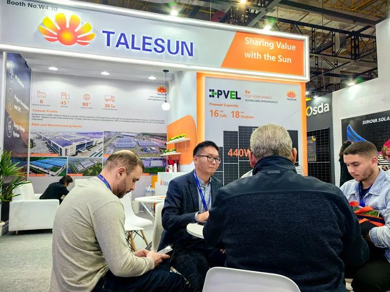 在展會(huì)上,騰暉光伏不僅重點(diǎn)展示了590W和620W雙面雙玻N型組件還展示了公司在大型地面電站、分布式光伏和農(nóng)業(yè)光伏等領(lǐng)域的綜合解決方案和成功案例。這些方案涵蓋了從項(xiàng)目規(guī)劃、設(shè)計(jì)、施工到運(yùn)維的全生命周期服務(wù),為南美地區(qū)的客戶(hù)提供了一站式的光伏解決方案。期間,騰暉光伏海外營(yíng)銷(xiāo)團(tuán)隊(duì)還與南美本土企業(yè)和研究機(jī)構(gòu)就光伏技術(shù)在該地區(qū)的應(yīng)用前景與未來(lái)合作展開(kāi)了深入探討。
