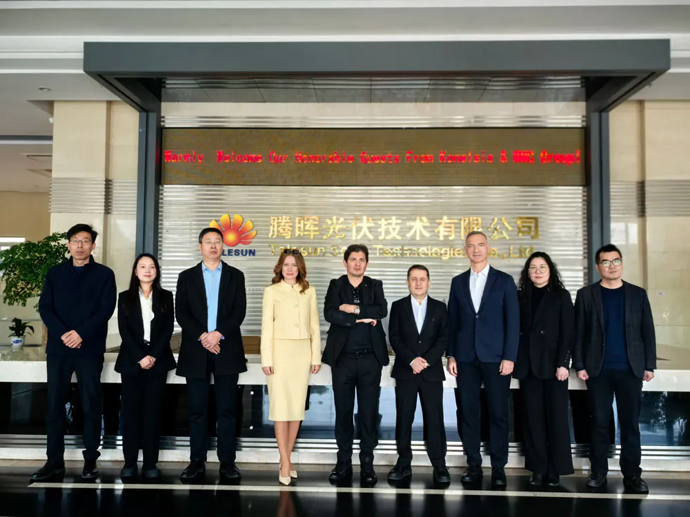 2025年3月21日,土耳其知名企業(yè)Avesoro與Konelsis公司代表團(tuán)到訪騰暉光伏(Talesun Solar)蘇州總部。雙方圍繞光伏技術(shù)研發(fā)、產(chǎn)業(yè)協(xié)同及綠色能源應(yīng)用等議題展開交流,并就深化歐亞及非洲市場合作達(dá)成多項(xiàng)共識(shí),共同推動(dòng)全球能源低碳轉(zhuǎn)型進(jìn)程。