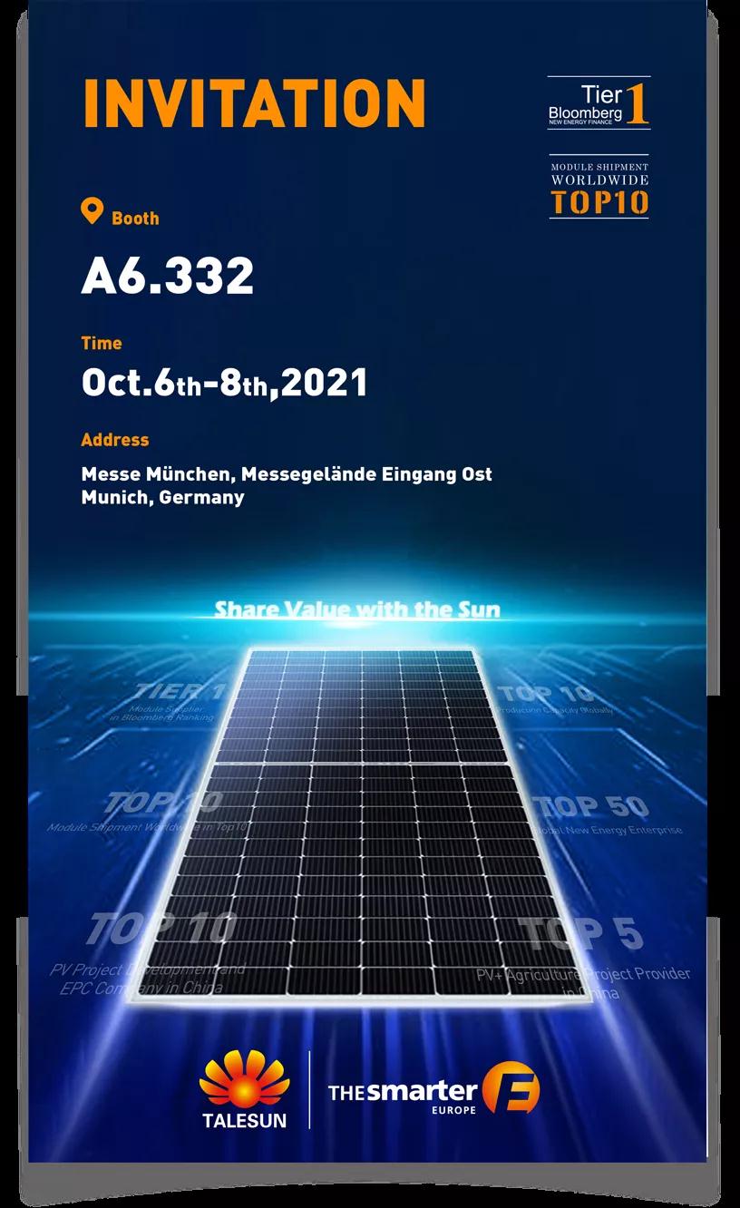 2021年歐洲智慧能源展將于10月6-8日在德國慕尼黑舉行。騰暉光伏將攜系列高效光伏組件亮相歐洲智慧能源展,歡迎蒞臨我們的展臺A6. 332。