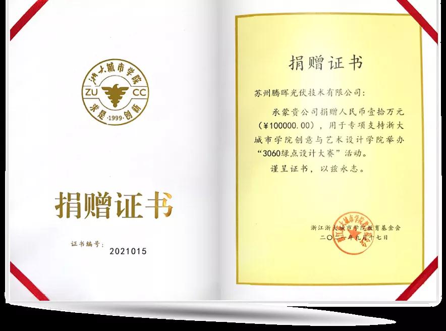 近日,騰暉光伏向浙大城市學(xué)院捐資十萬(wàn)元,專項(xiàng)支持該校3060綠點(diǎn)設(shè)計(jì)創(chuàng)新大賽活動(dòng)。此外,雙方還將在清潔能源推廣與應(yīng)用、創(chuàng)新人才培養(yǎng)和能源科技成果轉(zhuǎn)化等多個(gè)領(lǐng)域深化合作關(guān)系。