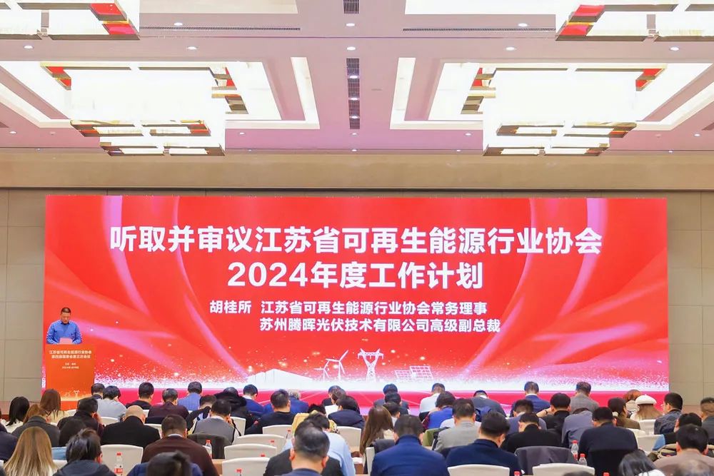 2024年1月19日,江蘇省可再生能源行業(yè)協(xié)會(huì)第四屆理事會(huì)第三次會(huì)議在南京隆重舉行。作為可再生能源領(lǐng)域的領(lǐng)軍企業(yè)之一,騰暉光伏高級(jí)副總裁胡桂所應(yīng)邀出席此次會(huì)議。期間受協(xié)會(huì)委托代表協(xié)會(huì)宣讀了《江蘇省可再生能源行業(yè)協(xié)會(huì)2024年度工作計(jì)劃》,并與協(xié)會(huì)各理事共同探討了可再生能源的未來發(fā)展方向。