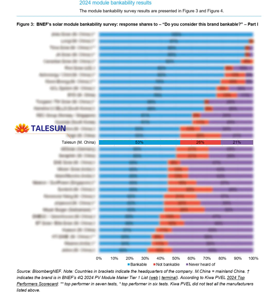 近日,全球知名研究機(jī)構(gòu)彭博新能源財(cái)經(jīng)(BNEF)公布了《2024年光伏組件和逆變器可融資性調(diào)查報(bào)告》(PV Module and Inverter Bankability 2024)?,騰暉光伏憑借穩(wěn)健的財(cái)務(wù)表現(xiàn)與良好的企業(yè)商譽(yù)排名前列。這一權(quán)威認(rèn)證不僅是對(duì)騰暉光伏產(chǎn)品可靠性與品牌價(jià)值的充分肯定,更標(biāo)志著我們的組件已成為全球金融機(jī)構(gòu)與投資者眼中“低風(fēng)險(xiǎn)、高價(jià)值”的綠色資產(chǎn)標(biāo)桿。