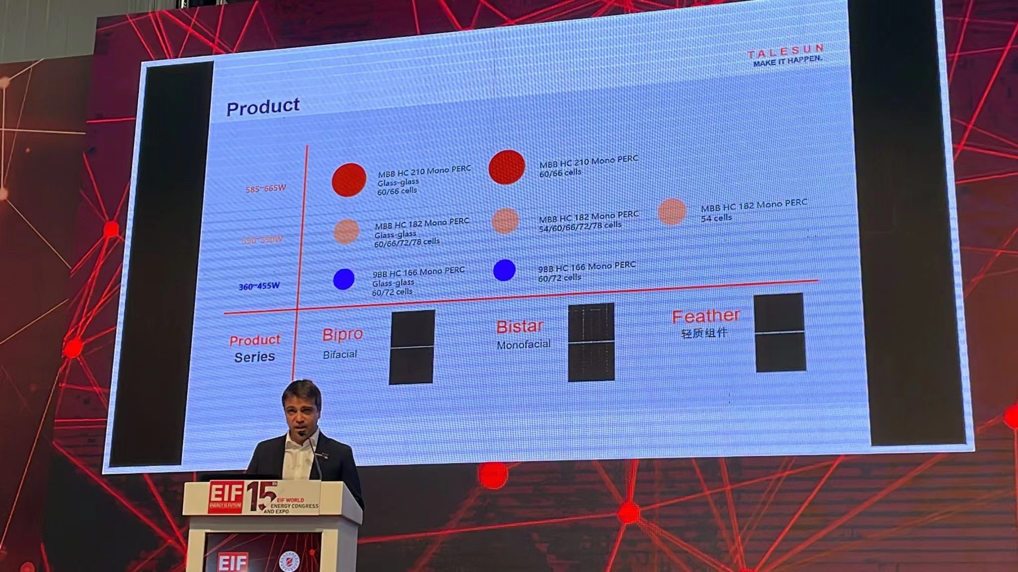 此次騰暉光伏 根據(jù)當(dāng)?shù)厥袌?chǎng)需求,展出了BIPRO系列、BISTAR系列、FEATHER(輕質(zhì))系列共3款組件產(chǎn)品。三款產(chǎn)品皆采用大尺寸電池片和多主柵設(shè)計(jì),憑借著產(chǎn)品特色和優(yōu)秀的設(shè)計(jì)引起了參展者的強(qiáng)烈興趣和廣泛關(guān)注,成為本次展會(huì)備受矚目的焦點(diǎn)。